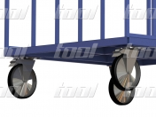 Колеса выполненные из чугуна с цельнорезиновыми шинками обеспечивают маневренность даже полностью нагруженного контейнера. Два поворотных колеса оснащены тормозами.